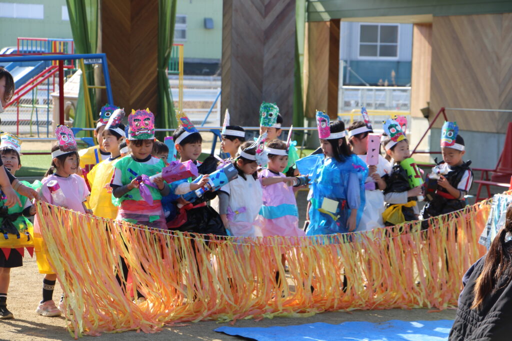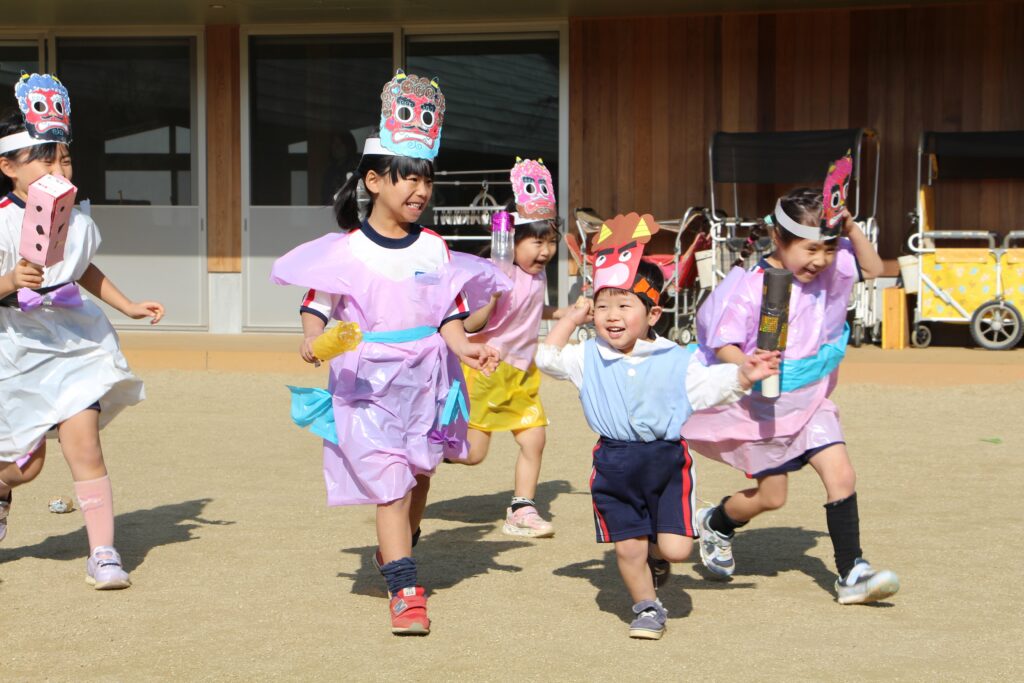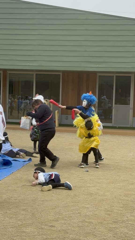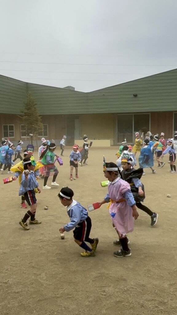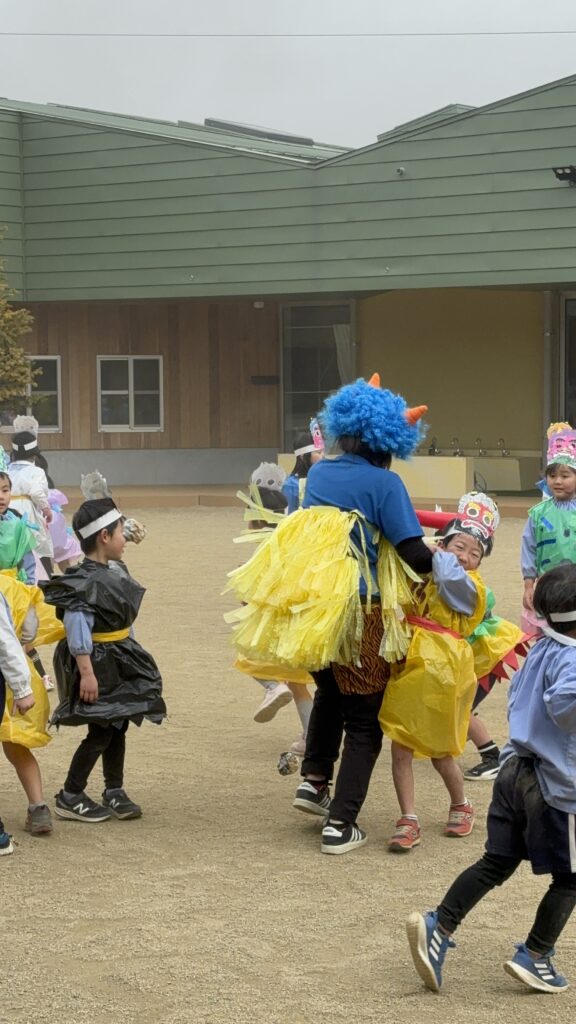鬼役の先生たちも年長、年中さんに負けないように頑張ってくれました。